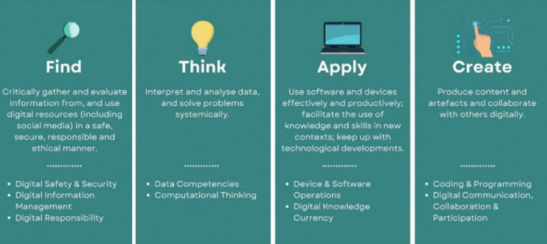 Aligned to the The Find, Think, Apply, Create (FTAC) framework, students will acquire digital skills across four components in the FTAC framework.